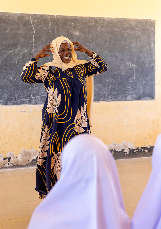 Saida and other Kungwi women host weekend community sessions and school visits to facilitate dialogue and spread awareness about topics like gender-based violence, sexual and reproductive health and the importance of education.