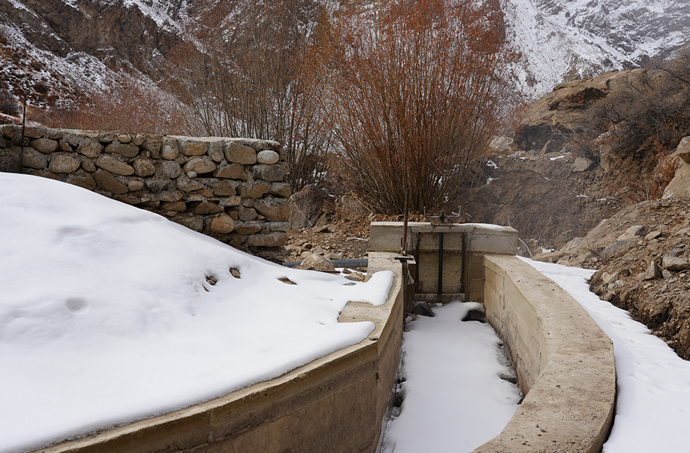 A newly reconstructed irrigation channel runs through Boghev village in Suchon Jamoat, Shugnan district, where steep slopes and high-altitude conditions make infrastructure work both complex and risky. Situated 2,400 metres above sea level, the area is prone to landslides and rockfalls, posing ongoing challenges for local farmers.