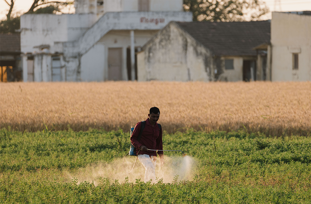 A farmer in coastal Gujarat applies an organic bio-spray to his crops, part of a shift towards regenerative farming practices that restore soil health and reduce reliance on chemical fertilisers.