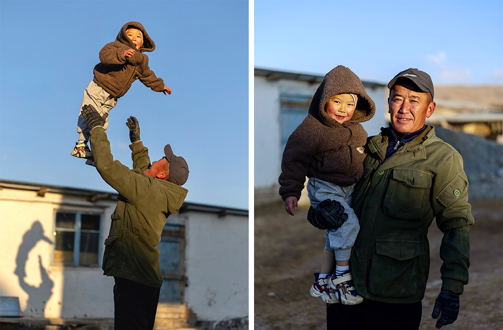 Father and son: Bakytbek plays with his youngest child, Koshoy, in the morning light. After attending workshops focused on parental engagement and gender equality, supported by AKF, Bakytbek has become a more attentive, involved parent and partner – and he has also become a role model for others in his rural village in the Kyrgyz Republic.