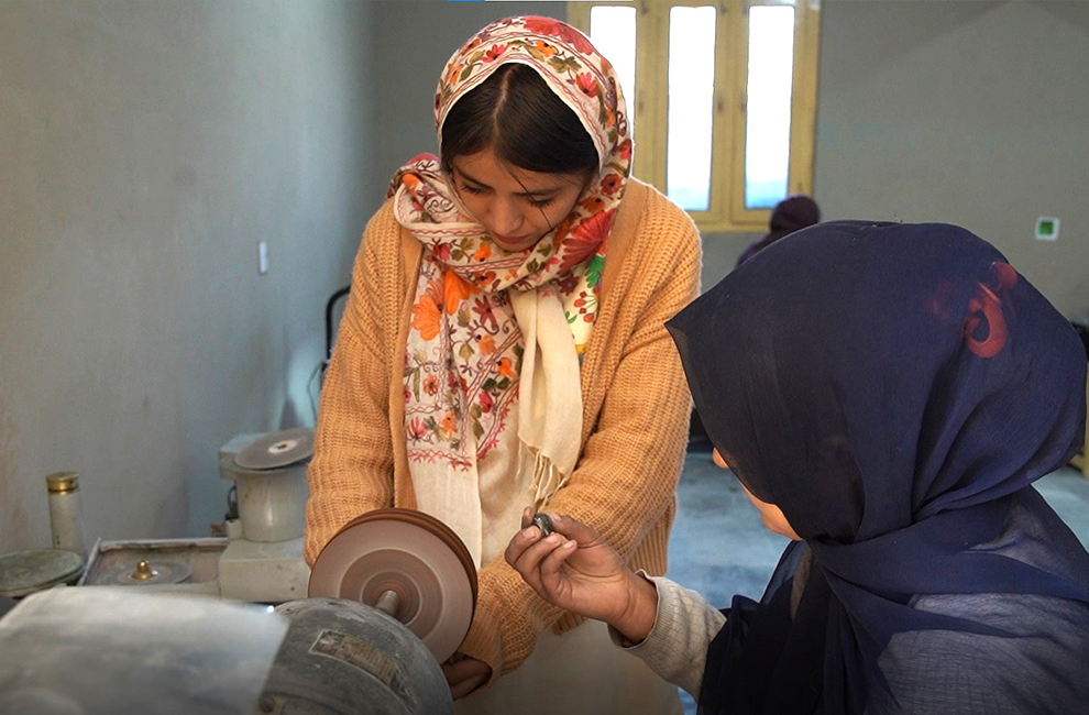 As part a three-month training programme, these women are learning how to cut and polish gemstones. The hands-on training is facilitated by the Aga Khan Rural Support Programme (AKRSP) in Pakistan in partnership with the Baltistan Culture Development Foundation (BCDF).