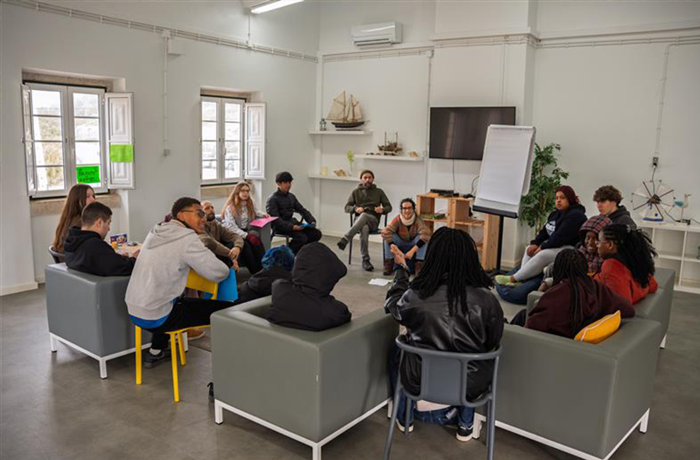 Young people gather at the second Palavras que Contam retreat – a project led by AKF in the municipality of Sintra, which translates as “words that matter”. The project supports young people in writing and publishing their own stories, partnering with a local publishing company, Almedina.