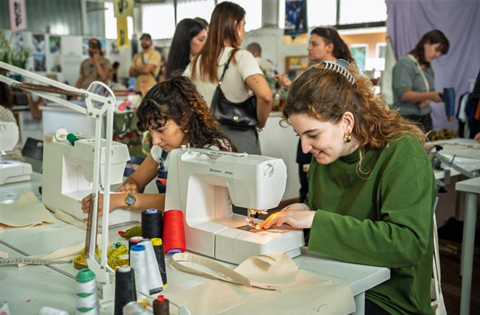 During the Amálgama Fair in Serra das Minas Market, participants join a sewing workshop to craft their own tote bags. The event, supported by AKF’s Creative Industries HUB initiative, celebrated art, creative skills, and community. This was the third edition of the fair, bring together more than 25 artists working in areas such as illustration, literature, screen printing, tattooing, clothing, and music, among others.