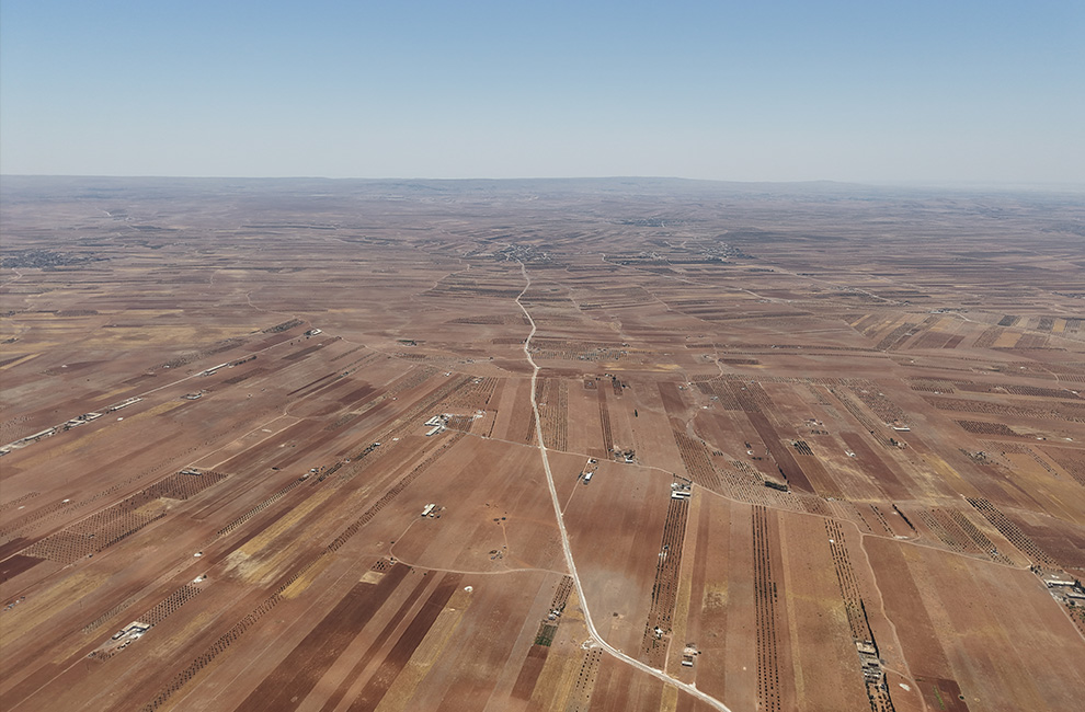 Rural Hama’s ‘desert’ from above. Much of the area has been experiencing a multi-year drought, making it increasingly difficult to grow crops. In response, AKF is working with farmers to access new sources of water through solar-powered pumps, using water as economically as possible. Farmers are also adopting drip irrigation, building greenhouses, planting more climate resilient crops, and diversifying livestock to adapt to the rapidly changing climate.