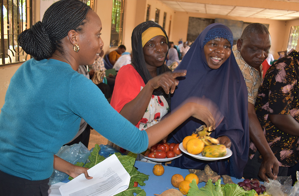 During a lively workshop for school nutrition teams, participants build plates featuring a variety of locally grown fresh fruits and vegetables, including papayas, spinach, coconuts and more. Across southern Tanzania’s Lindi district, AKF is facilitating workshops for teachers and school committee members to grow their nutritional knowledge and improve school meals at their respective schools. This initiative is an effort to address student malnutrition, improve academic performance, and increase school attendance by providing healthy, balanced meals.